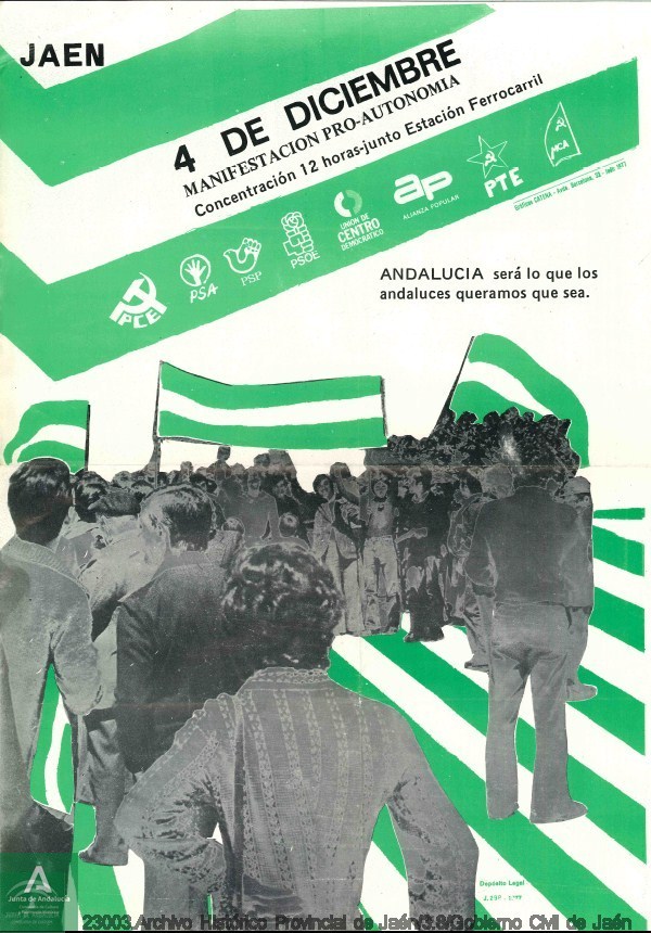 En la documentación de la época, vemos cómo el 4 de diciembre fue declarado “Día de Andalucía” fruto de un acuerdo a nivel regional entre los partidos políticos, constituyéndose para la provincia de Jaén una comisión con el objetivo de organizar los actos para la celebración de ese día, en el que el principal era la manifestación Pro-Autonomía para Andalucía. La comisión estuvo compuesta por los partidos políticos siguientes: