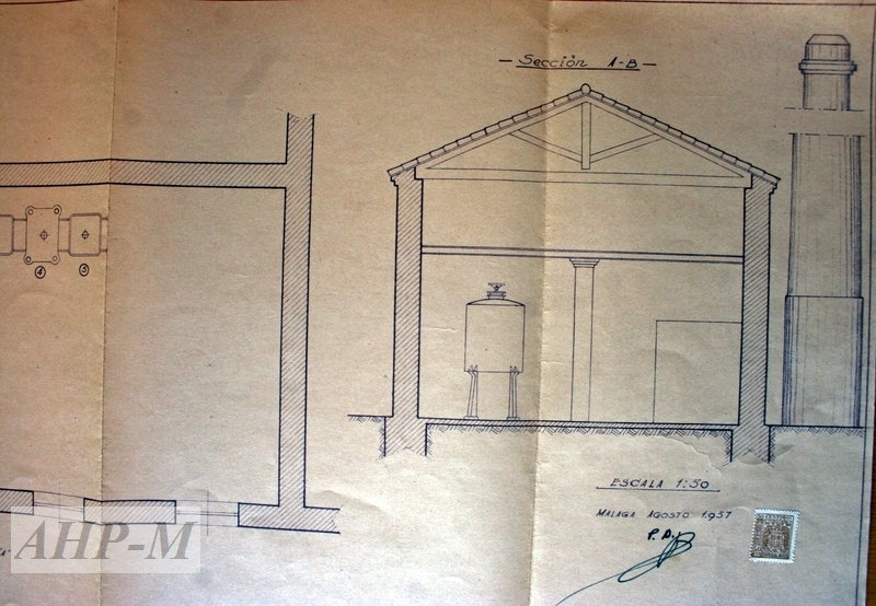 1957, julio. Málaga. Archivo Histórico Provincial de Málaga. Secc.Delegación P. AgriculturaSig. 3.765. Ampliación de fábrica de aceite de oliva de Antonio García Moreno de Fuengirola con un aparato agotador de orujo “Expaditosa” mod. A. Proyecto; memoria; plano (detalle). JMG.