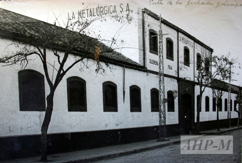 [1920-1930]. Málaga. Archivo Histórico Provincial de Málaga. Archivo de La Metalúrgica. Sig. FOT 598/81 y 82 (Álbum). Fachada de la fábrica de La Metalúrgica, en el Paseo de los Tilos. Fotografía; b/n. Observ.: El emplazamiento exacto de la fábrica no se sabe con seguridad, por el cambio de números que tuvo a lo largo de los años el Paseo de los Tilos. Sí se sabe que en la década de los años 10 estaba en el número 28 y cuando cierra en los años 50, en el número 68. ADS.