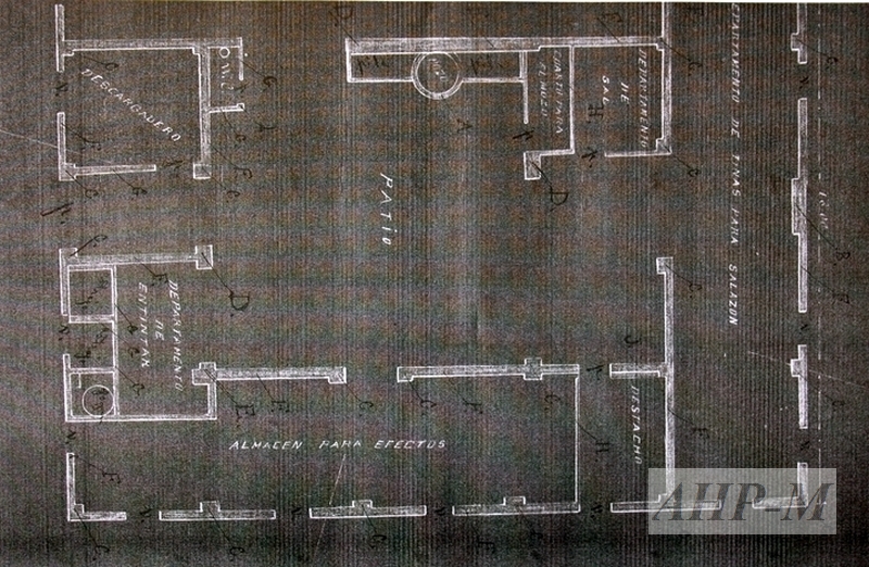 [1864-1865]. Málaga. Archivo Histórico Provincial de Málaga. Sección Fomento. Sig. 26826/25. MPD. 15398. Planta general y planta baja de la Granja de San Pedro de Alcántara. Plano (detalle); papel tela. ECB.