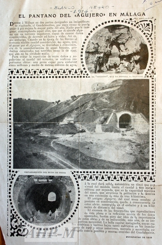 1914. Madrid. Archivo Histórico Provincial de Málaga. Sección Confederación Hidrográfica. Sig. 3.853. Noticia aparecida en la revista Blanco y Negro sobre el pantano del Agujero. JMG.