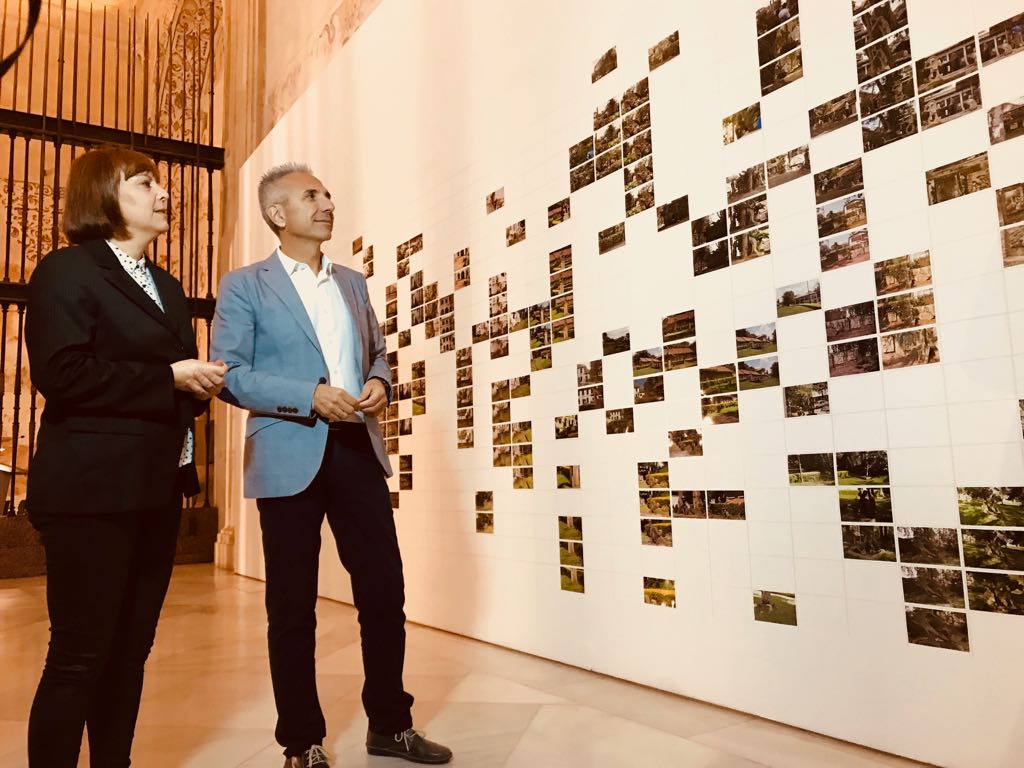 El consejero de Cultura, Miguel Ángel Vázquez, y la comisaria de la muestra, Olga Fernández López, en la inauguración de la muestra.
