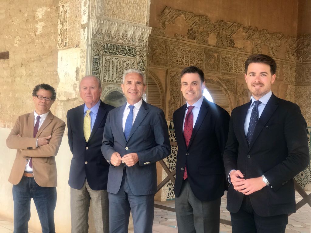 Reynaldo Fernández, director de la Alhambra, Juan Carlos Fierro, presidente de WMF España, el consejero de Cultura, Miguel Ángel Vázquez, Juan Orti, presidente de American Express España, y Guillermo Quero, delegado de Cultura en Granada.