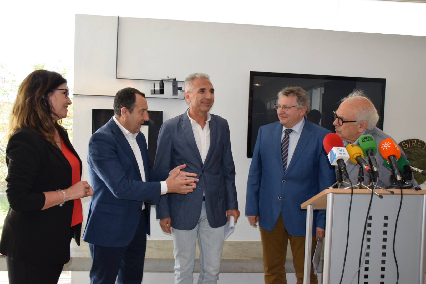 Monsalud Bautista, delegada territorial de Cultura, José Luis Ruiz Espejo, delegado del Gobierno en Málaga, Miguel Ángel Vázquez, consejero de Cultura, Marcelino Sánchez, director general de Bienes Culturales y Museos, y Bartolomé Ruiz, director de los Dólmenes.