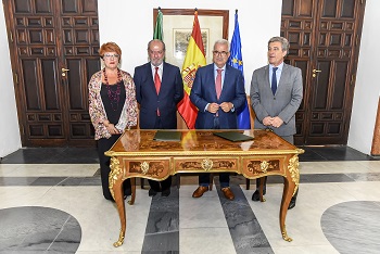 El vicepresidente de la Junta y consejero de la Presidencia, Administración Local y Memoria Democrática, Manuel Jiménez Barrios, y el presidente de la Federación Andaluza de Municipios y Provincias (FAMP), Fernando Rodríguez Villalobos, han suscrito un protocolo de actuación entre la Junta y la FAMP para colaborar en el impulso en la recuperación de la Memoria Histórica y Democrática en la Administración Local.