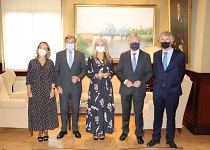La consejera de Cultura y Patrimonio Histórico, Patricia del Pozo, en la firma del protocolo con Macarena O'Neill, Rafael Carmona, Juan José Primo Jurado y Ángel Pulido