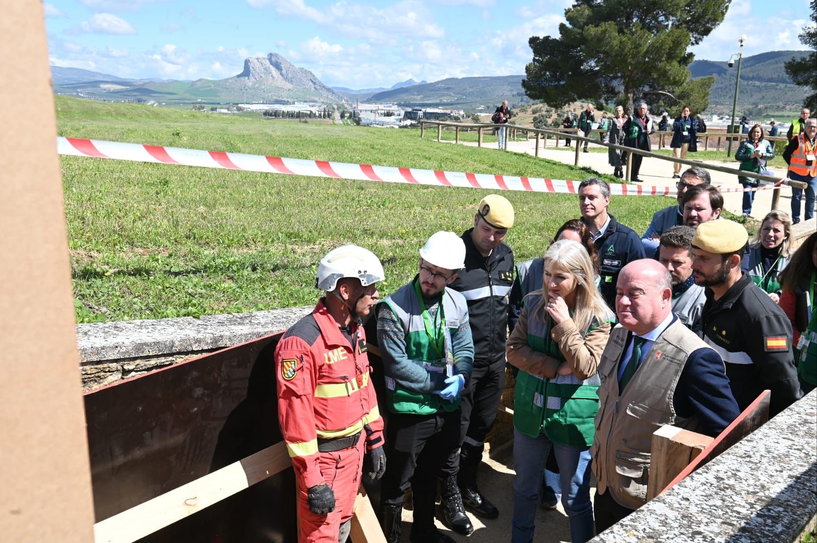En esta actividad han participado la consejera de Cultura y Deporte, Patricia del Pozo, el alcalde de Antequera, Manuel Barón, y el director general de Emergencias y Protección Civil de la Consejería de la Presidencia, Interior, Diálogo Social y Simplificación Administrativa, Alejandro García, junto a un amplio dispositivo con alrededor de 200 efectivos entre Protección Civil, Policía Local, Cuerpo Nacional de Policía, Unidad Militar de Emergencias, bomberos de Consorcio Provincial de Antequera, psicólogos del Colegio de Andalucía Oriental y de los Servicios Sociales de Antequera, Cruz Roja, Protección Civil, la Red Nacional de Radio de Emergencia (REMER), la Fundación Fuego, el Instituto Andaluz de Patrimonio Histórico (IAPH) y el Instituto Valenciano de Conservación, Restauración e Investigación.