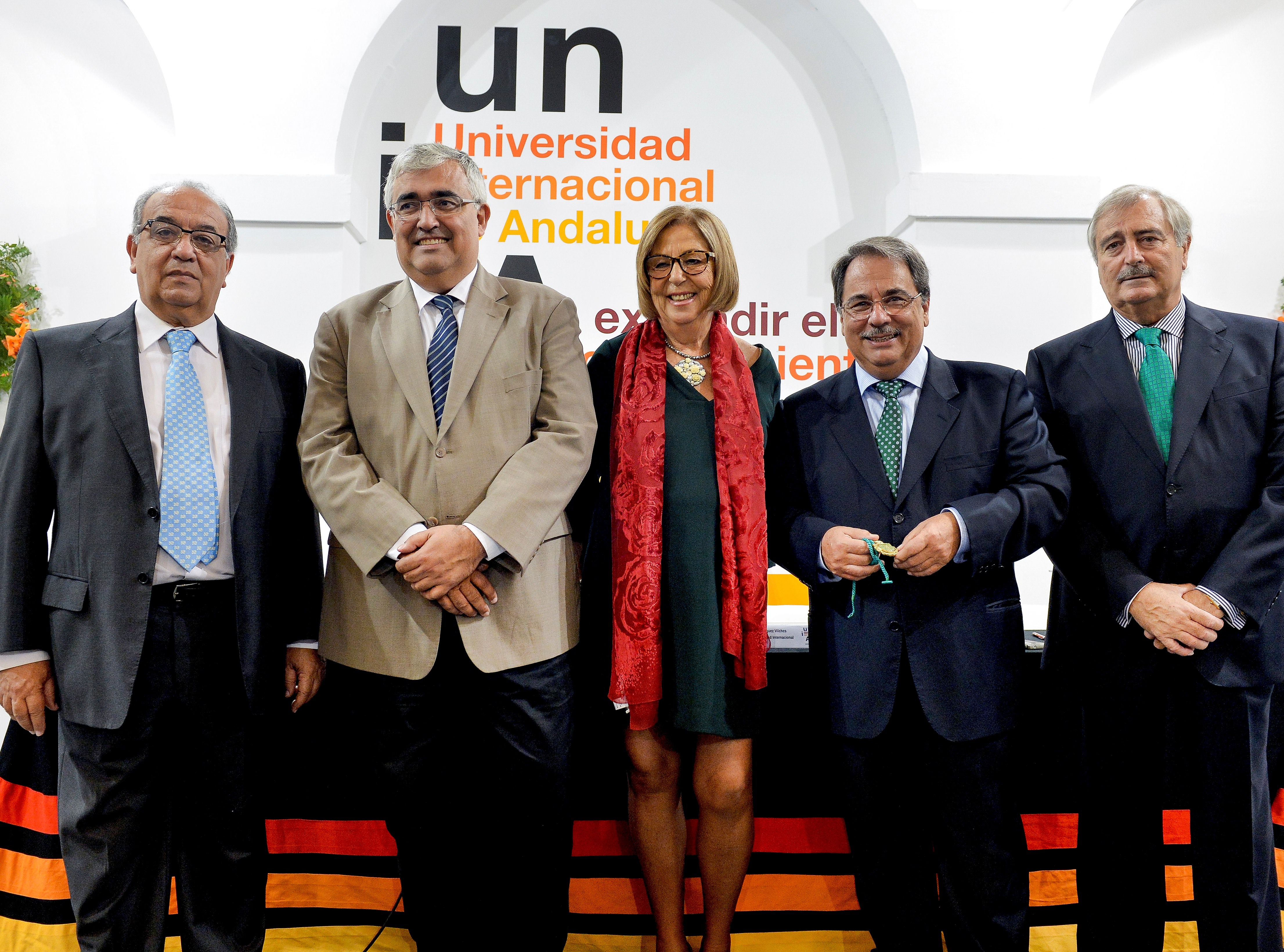 Los consejero de Economía y Conocimiento, Antonio Ramírez de Arellano; y Educación, Adelaida de la Calle, han asistido a la entrega de la medalla de oro de la Universidad Internacional de Andalucía (UNIA) al ex rector de esta institución Juan Manuel Suárez Japón, cuya trayectoria acumula más de 40 años dedicado a la enseñanza.
