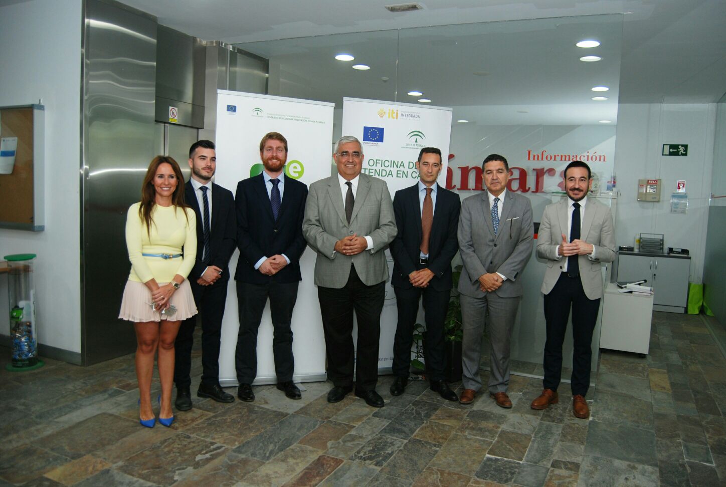 El consejero de Economía y Conocimiento ha visitado la oficina de Extenda en Algeciras, que comenzó a funcionar el pasado mes de enero el marco de la Iniciativa Territorial Integrada (ITI) de Cádiz y dentro de un espacio cedido por la Cámara de Comercio algecireña dentro de sus instalaciones.
