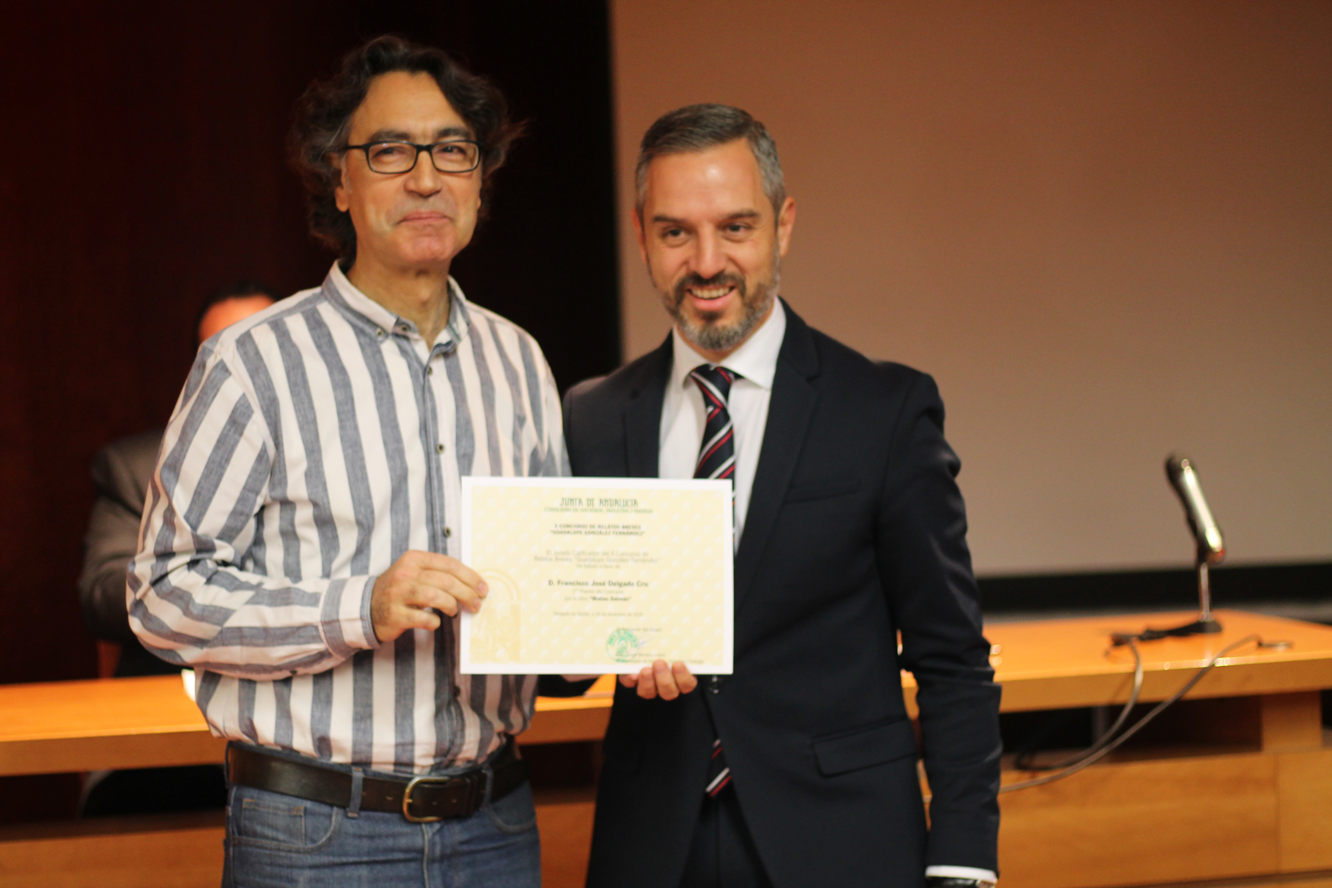 El primer premio del X Concurso de Relatos Breves también ha sido para Francisco José Delgado, por la obra Matías Dalmán. Además, el jurado ha decidido conceder accésits a Nieves Lacasta Ramírez, de la Viceconsejería, por El intruso; a Juan Francisco Gómez, de la Dirección General de Tributos, Financiación, Relaciones Financieras con las Corporaciones Locales y Juego, por la obra Gorazde, y, el tercero, a José Antonio Hernández, de la Intervención Provincial de Sevilla, por la obra Venus.