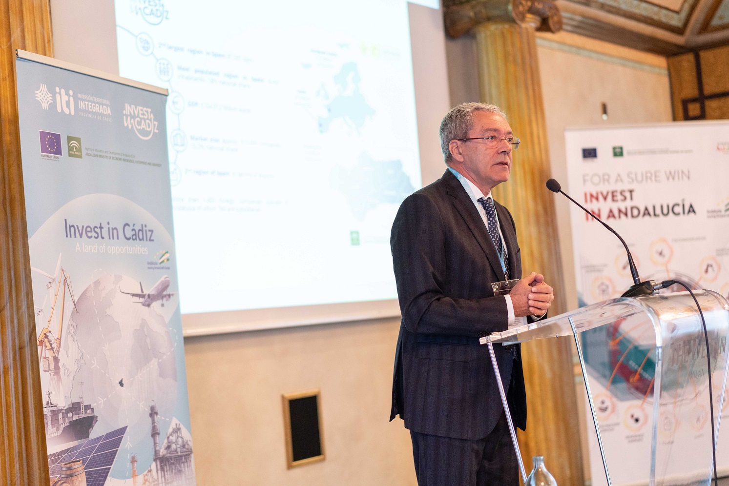 El consejero de Economía, Conocimiento, Empresas y Universidad, Rogelio Velasco, ha presentado en la segunda jornada de su viaje institucional a Milán, ante empresarios e instituciones del norte de Italia las iniciativas públicas ‘Invest in Andalucía’ e ‘Invest in Cádiz’, orientadas a fomentar inversiones empresariales en Andalucía y, en concreto, en la provincia de Cádiz. En dicho encuentro, también ha puesto el acento en las medidas aprobadas por el Ejecutivo andaluz para la mejora de la regulación económica y la simplificación de las trabas administrativas al desarrollo de nuevos proyectos empresariales.