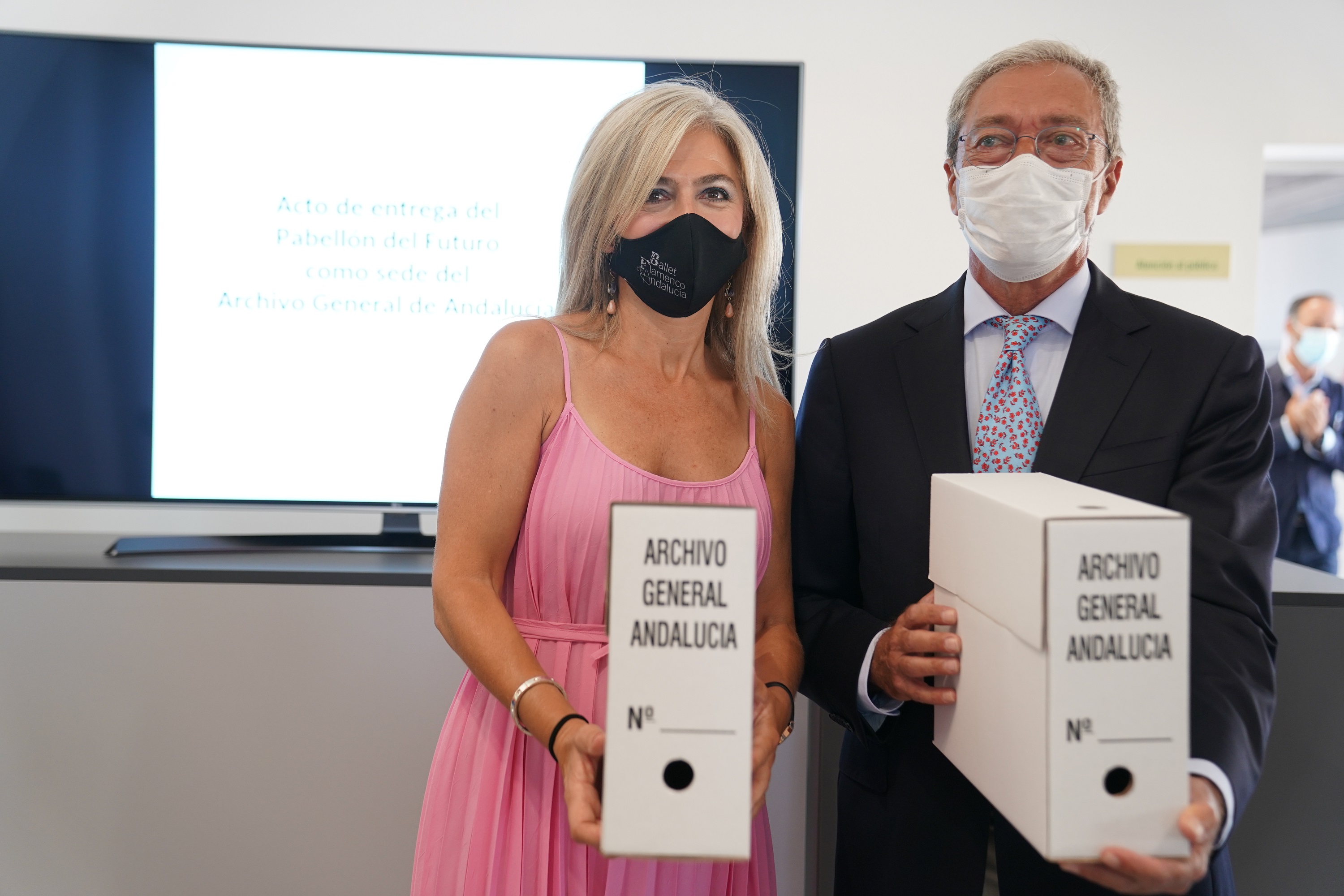 El Archivo General de Andalucía (AGA) estará operativo en los primeros meses del próximo año en el Pabellón del Futuro de la Expo’92 en el Parque Científico y Tecnológico (PCT) Cartuja, tras una inversión global de la Junta de 5,3 millones de euros. Los consejeros de Economía, Conocimiento, Empresas y Universidad, Rogelio Velasco, y de Cultura y Patrimonio Histórico, Patricia del Pozo, han presidido este lunes el acto de entrega de la nueva sede, cuya adecuación ya ha finalizado, de manera que de inmediato se llevará a cabo el traslado de los fondos documentales.