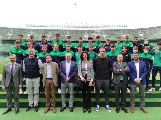 El consejero de Hacienda y Financiación Europea, Juan Bravo, ha asistido junto al director general de Formación del Profesorado e Innovación Educativa de la Consejería de Educación y Deporte, Antonio Segura, a una de las charlas del programa dirigida a la cantera del Real Betis Balompié, que ha sido conducida por el comunicador Pedro García Aguado, quien fuera campeón olímpico de waterpolo.