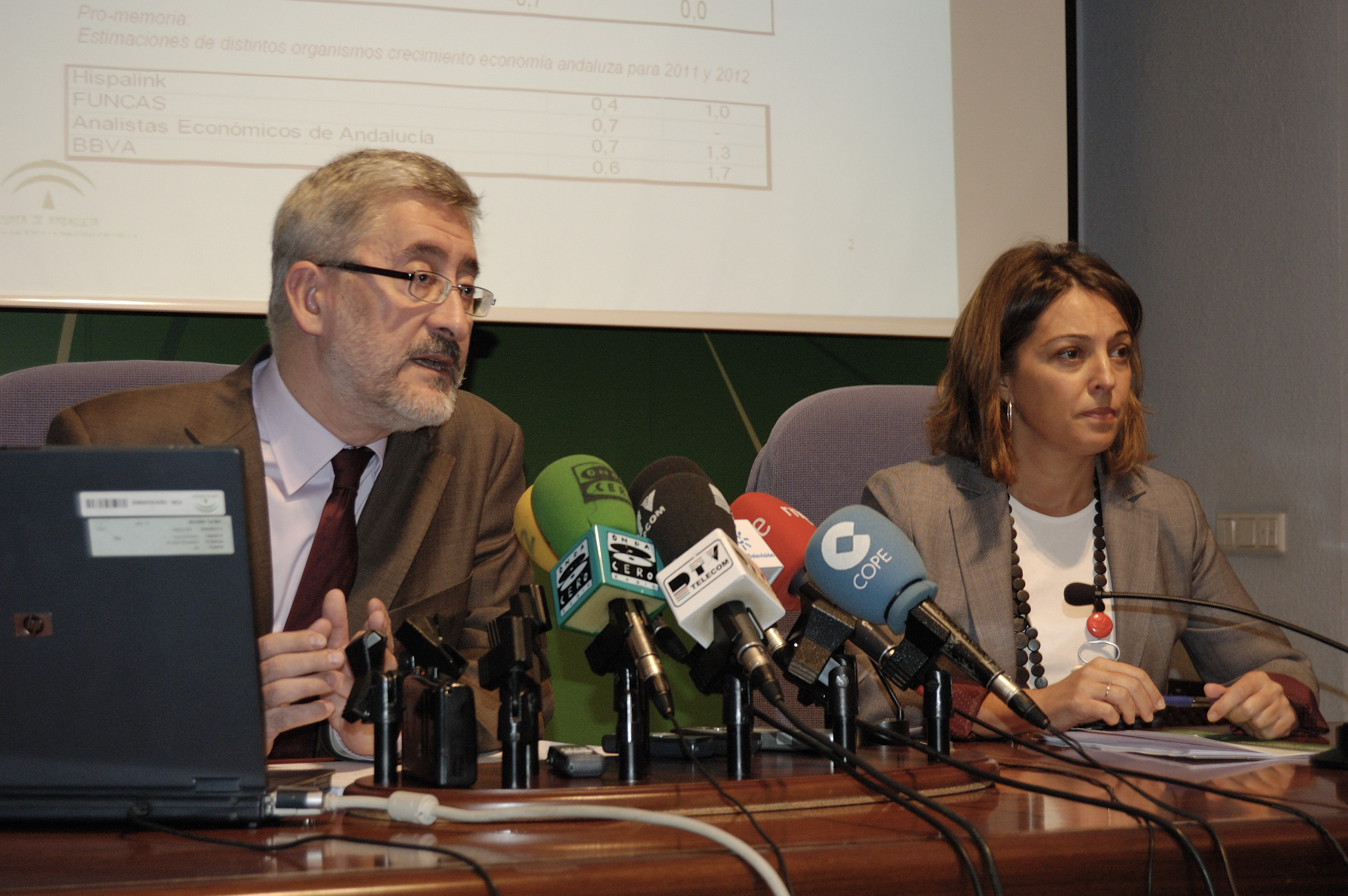 El consejero de Economía, Innovación y Ciencia, Antonio Ávila, y la delegada del Gobierno, Isabel Ambrosio, en un momento de la presentación.