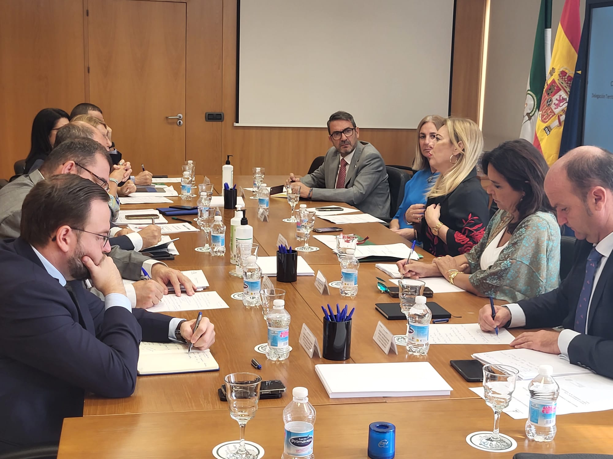 La consejera de Economía, Hacienda y Fondos Europeos, Carolina España, se ha reunido este viernes en Málaga con los delegados territoriales de Economía, Hacienda y Fondos Europeos y de Política Industrial y Energía, para analizar el impacto que tendrán las medidas incluidas en el decreto ley de rebaja de impuestos frente a la inflación aprobado esta semana por el Consejo de Gobierno.