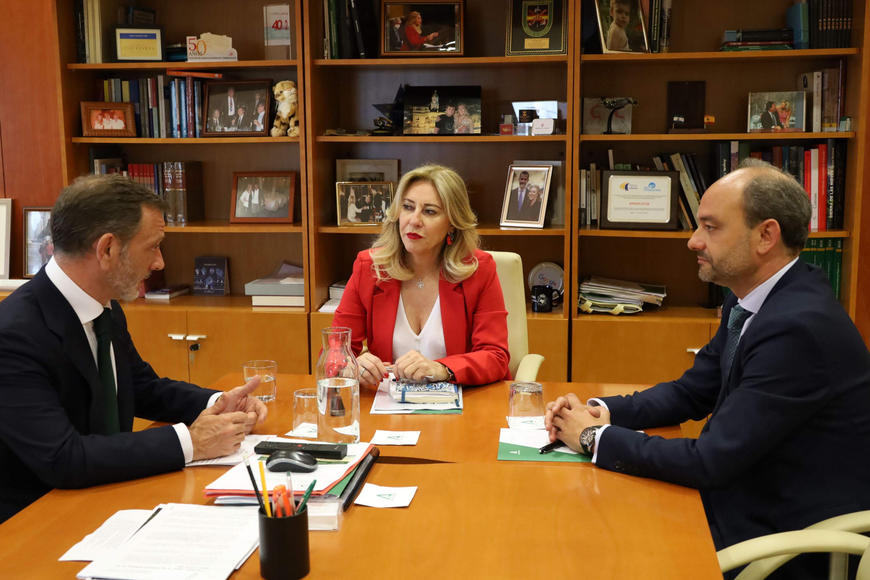 La consejera de Economía, Hacienda y Fondos Europeos, Carolina España, presidenta a su vez de la agencia Andalucía TRADE, se ha reunido con Antonio Castro y Antonio de la Morena para abordar el apoyo que la Junta de Andalucía prestará a la campaña de la candidatura de Málaga para la Expo 2027.
