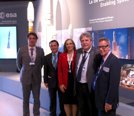 De (izquierda a derecha) El secretario general de Innovación, Industria y Energía, Vicente Fernández, Fernando Doblas, Teresa Sáez, directora general de Extenda, Juan Pedro Vela, presidente de Hélice, y Jacinto García responsable Relaciones Institucionales EADS España.