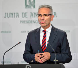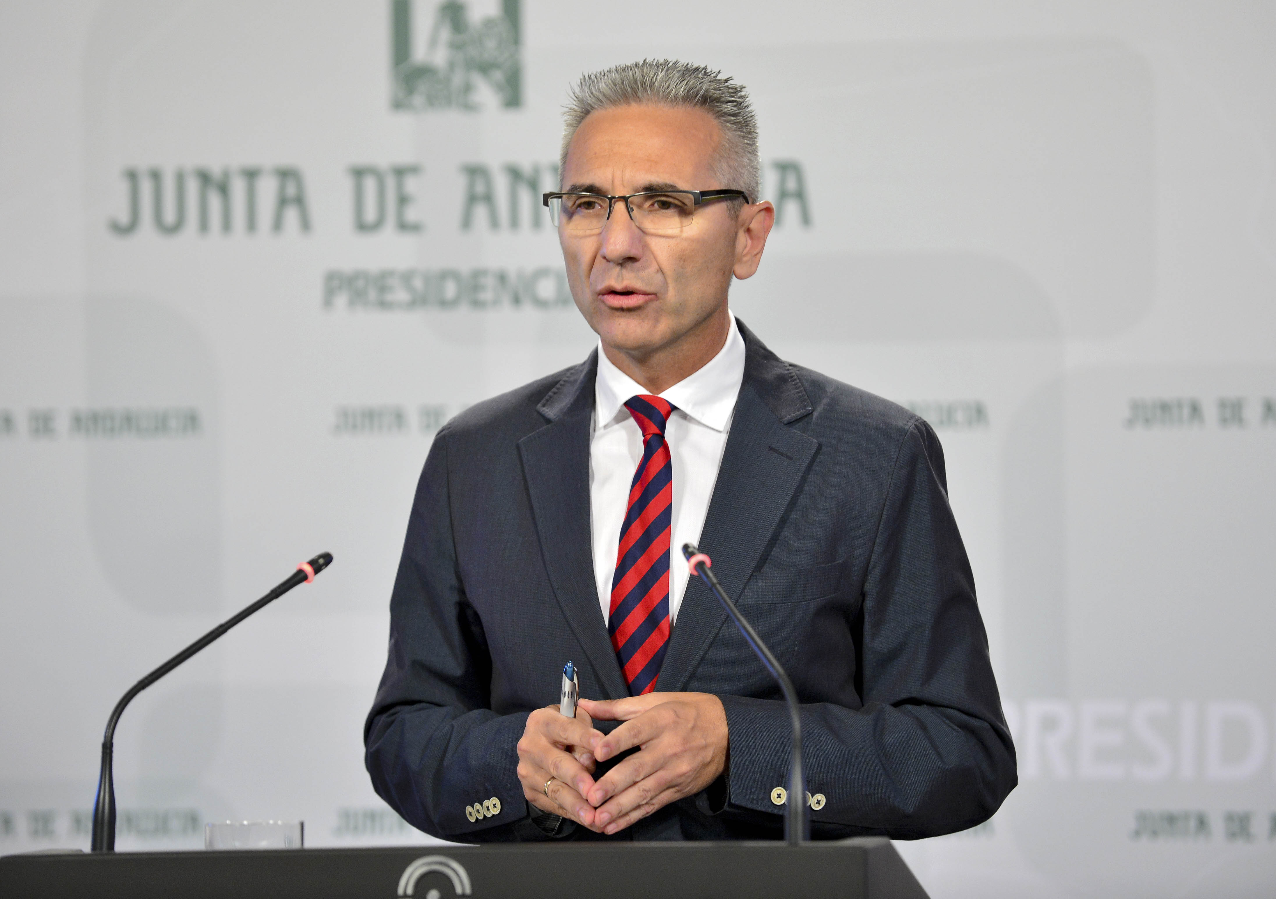 El portavoz del Gobierno andaluz informa de las nuevas previsiones económicas en la rueda de prensa de Consejo de Gobierno.