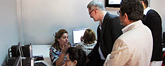 Ávila se ha interesado por el trabajo que desarrollan los dinamizadores de los centros de la Red Guadalinfo, así como de los voluntarios de Andalucía Compromiso Digital y les ha animado a seguir trabajando por la integración de estos colectivos en riesgo de exclusión social, desarrollando una labor que va más allá de la formación tecnológica, ayudando a las personas de estas barriadas a conocer los beneficios del uso adecuado de las TIC para desarrollar proyectos o buscar empleo y poniendo especial empeño en la educación de los más jóvenes.