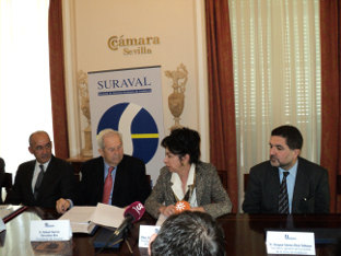 La firma ha tenido lugar en la sede la Cámara de Comercio de Sevilla, acto que ha contado también con la presencia de su presidente, Francisco Herrero León.