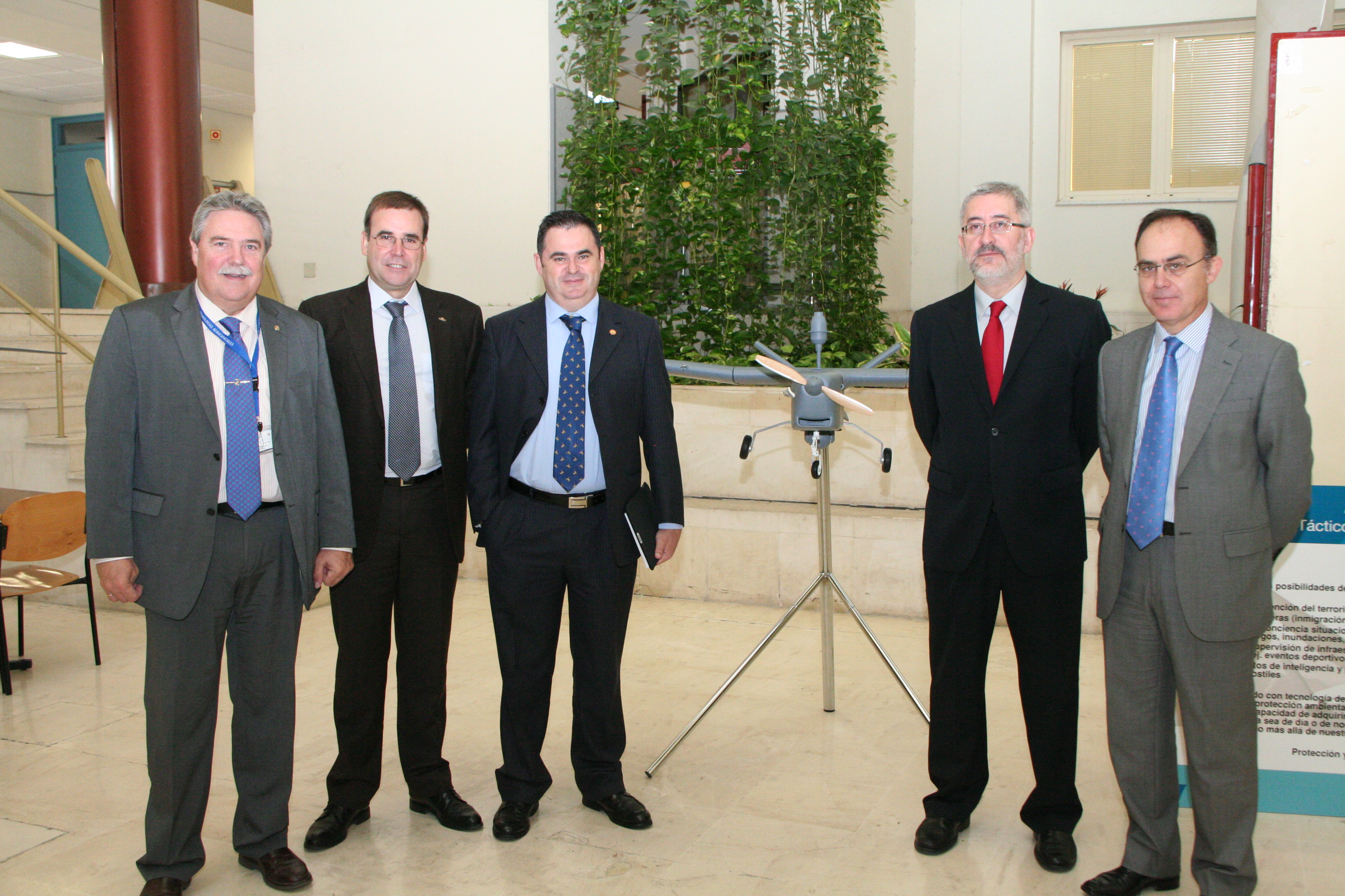 El consejero de Economía, junto al director del CATEC, el director de la ETS de Ingeniería, el vicerrector de Transferencia Tecnológica y el director de la Agencia IDEA.