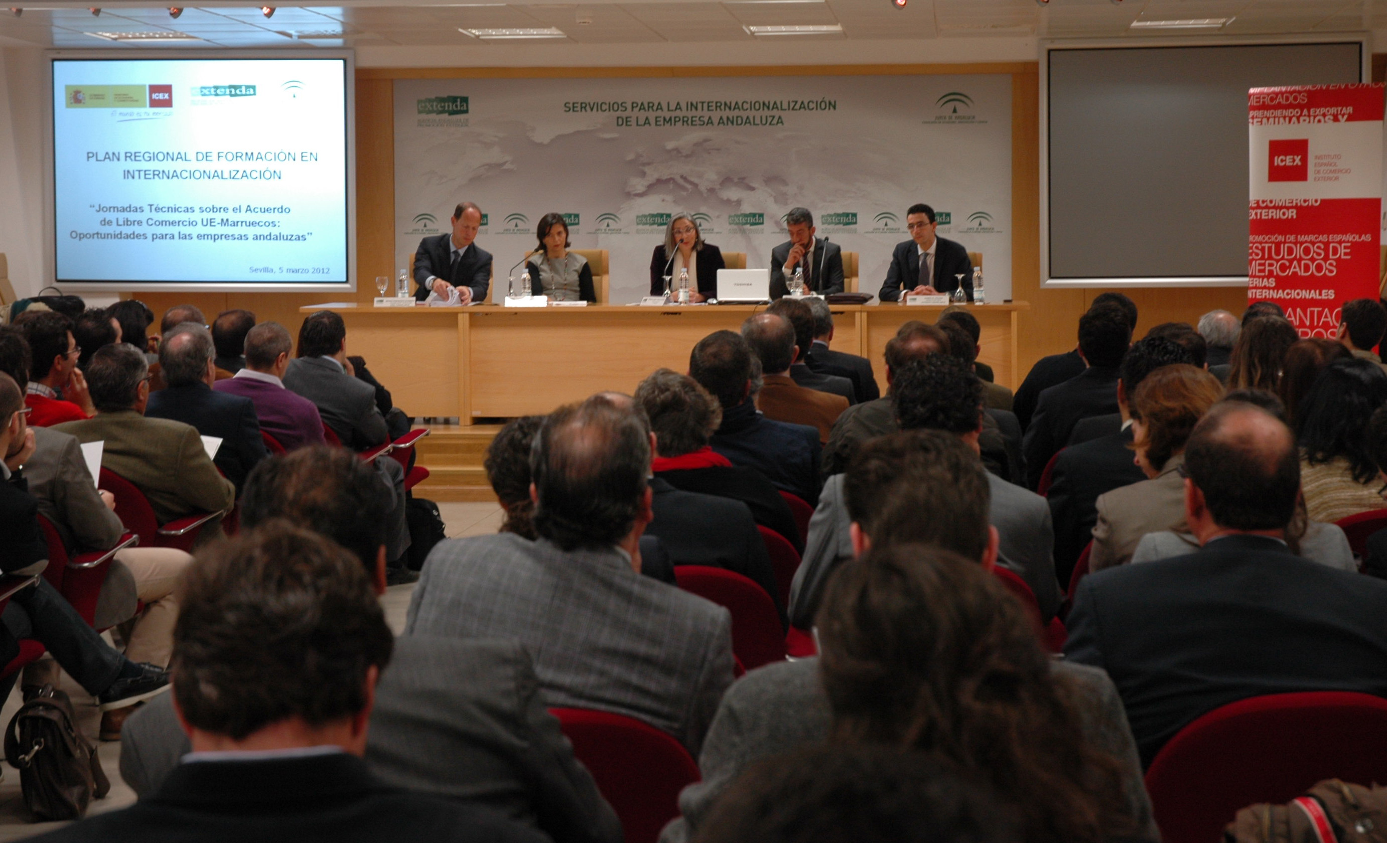 Un total de 108 empresas andaluzas han participado hoy en una jornada sobre el Acuerdo de Libre Comercio UE-Marruecos organizada por Extenda-Agencia Andaluza de Promoción Exterior, entidad dependiente de la Consejería de Economía, Innovación y Ciencia, en calidad de beneficiario del Proyecto Europeo de Cooperación Transfronteriza en el Ámbito Empresarial COOPTREMP cofinanciado por FEDER.