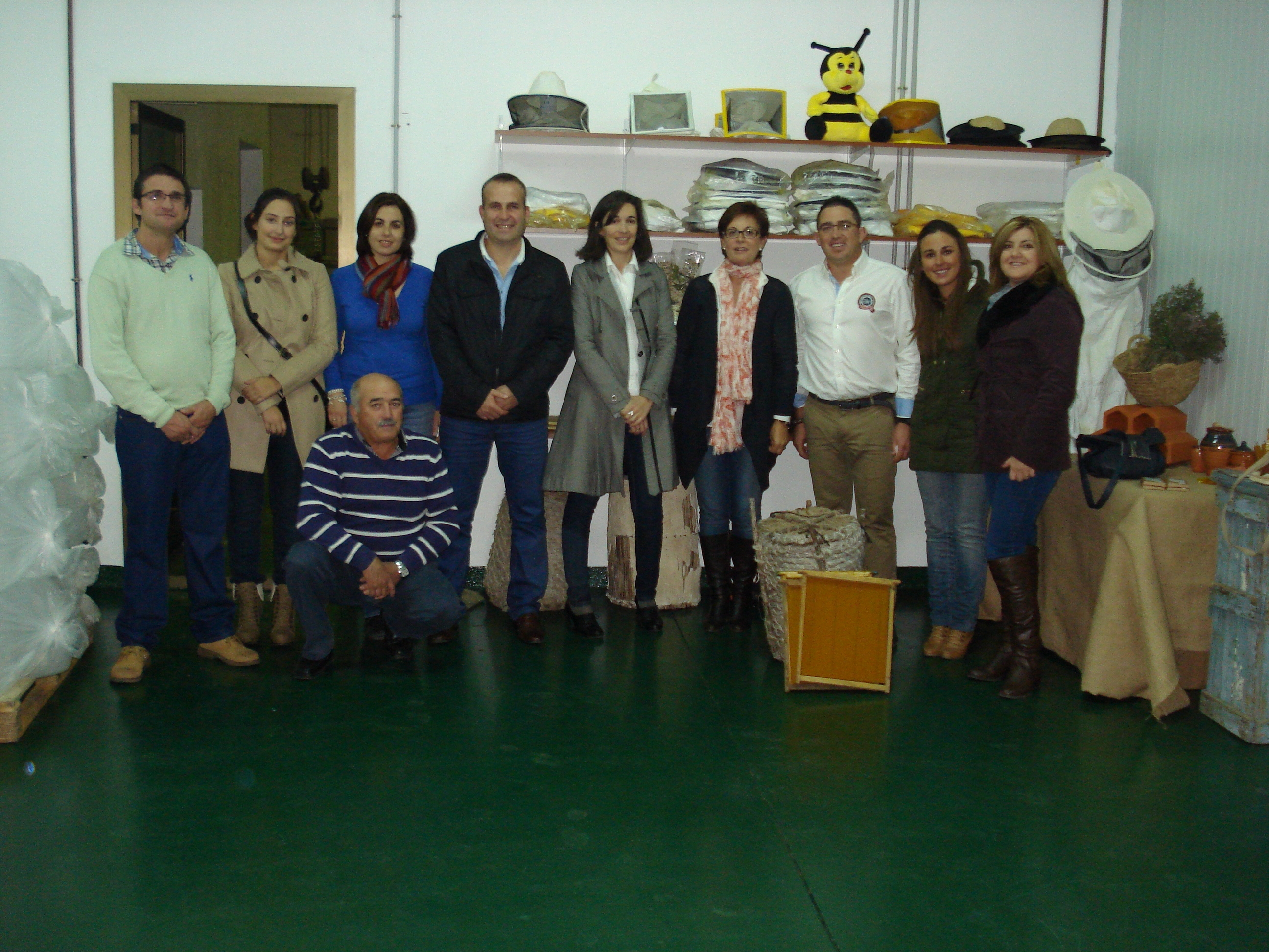 La delegada de Economía junto al promotor de Miel Sierra Filabres, la gerente provincial de IDEA, el alcalde y concejales de Lubrín y familiares del empresario.