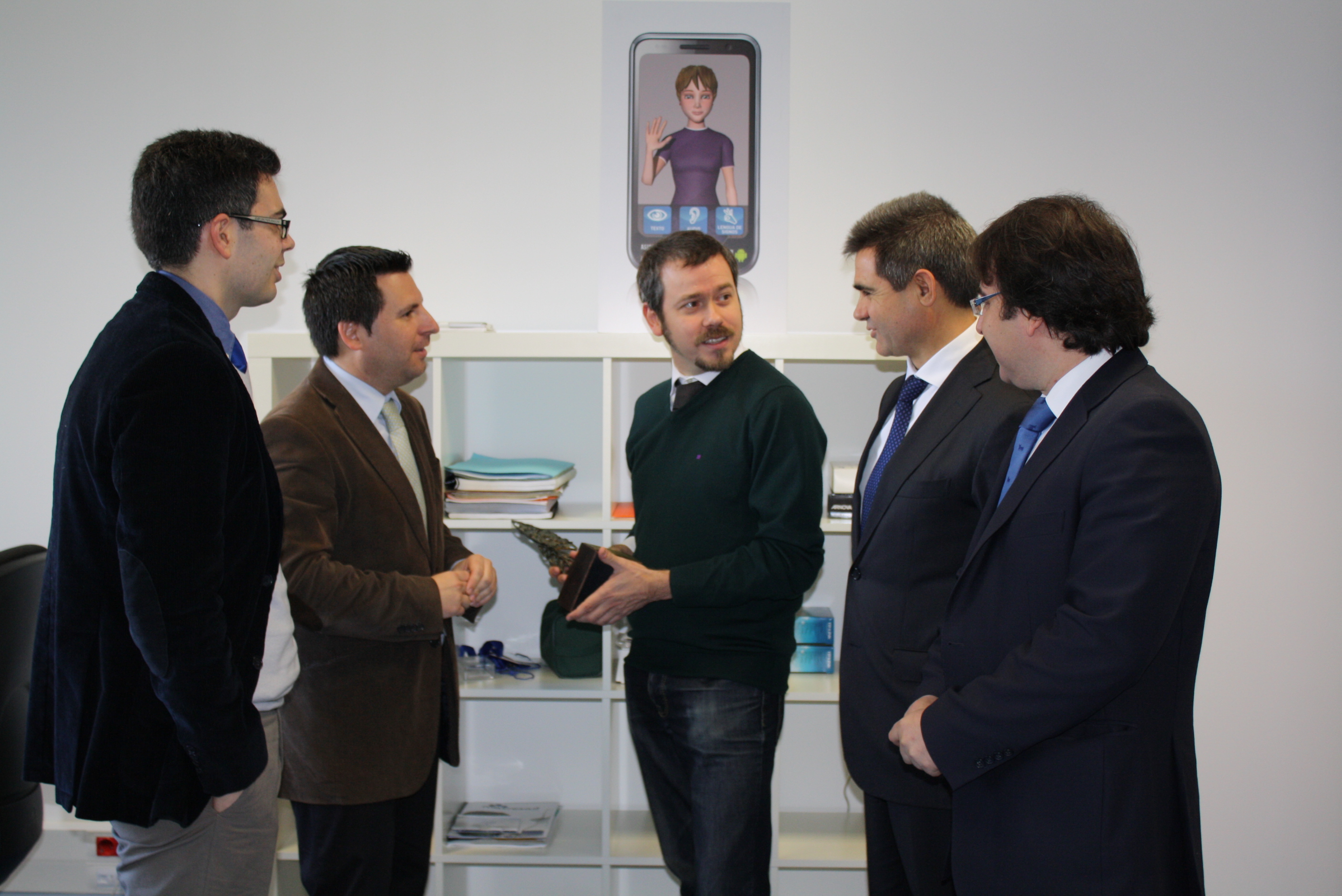El delegado de Economía, Innovación, Ciencia y Empleo, José Ignacio Expósito, acompañado por el director general de Rabanales 21, Juan Ramón Cuadros han visitado hoy la empresa cordobesa Signlab, galardonada a finales de enero con el Premio Nacional de la Fundación Vodafone a la Innovación en Telecomunicaciones, en la categoría “Emprendedor TIC”, por su proyecto denominado TextoSIGN que se centra en la traducción e interpretación de textos a Lengua de Signos mediante la generación de vídeos con un avatar animado en 3D (texto SIGN).