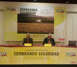El consejero de Economía, Antonio Ávila, y el secretario general de COAG Andalucía, Miguel López, en las jornadas sobre prevención en el sector primario.