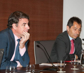 El secretario general de Innovación junto al director territorial de Vodafone durante la presentación de Minerva.