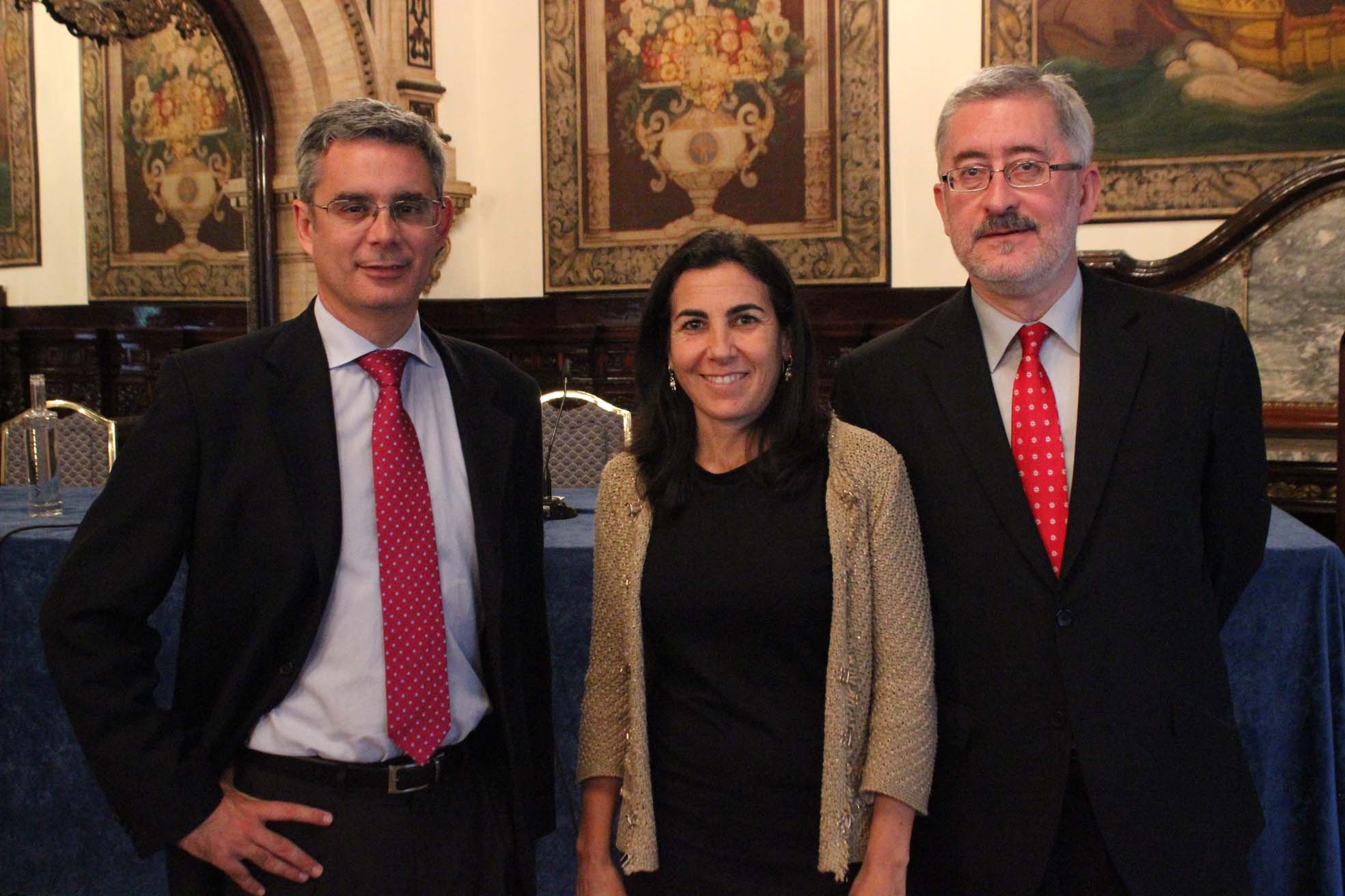 El director de El Correo de ANdalucía, Juan Carlos Blanco, la directora del Territorio Sur de Telefónica España, María Jesus Almanzor, y el consejero de Economía, Antonio Ávila