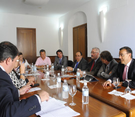 El consejero de Economía en la reunión con alcaldes de la provincia de Huelva para abordar el resultado del concurso minero con derechos en el concurso público de los registros mineros.