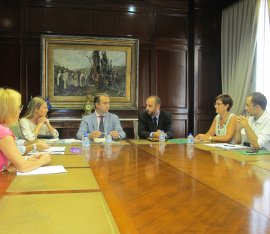 El director general de Telecomunicaciones y Sociedad de la Información de la Consejería de Economía, Innovación, Ciencia y Empleo, Ángel Ortiz, y la delegada territorial de Economía, Innovación, Ciencia y Empleo, Adriana Valverde, se han reunido esta mañana con el diputado provincial de Empleo y Promoción Económica, Amós García, para impulsar la colaboración entre ambas instituciones dentro del programa Guadalinfo, que cofinancian la Junta de Andalucía, con un 67%, y las diputaciones provinciales, con el 33% restante.