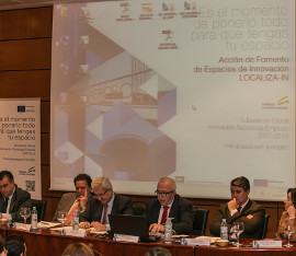 Los consejeros de la Presidencia, Manuel Jiménez Barrios, y Economía, Innovación, Ciencia y Empleo, José Sánchez Maldonado, han presentado en Cádiz el proyecto Localiza-IN, una acción de fomento para facilitar a las empresas su asentamiento en espacios de innovación de Andalucía, que incentivará hasta el 70% de la inversión empresarial para instalarse en el espacio portuario de la Bahía gaditana.