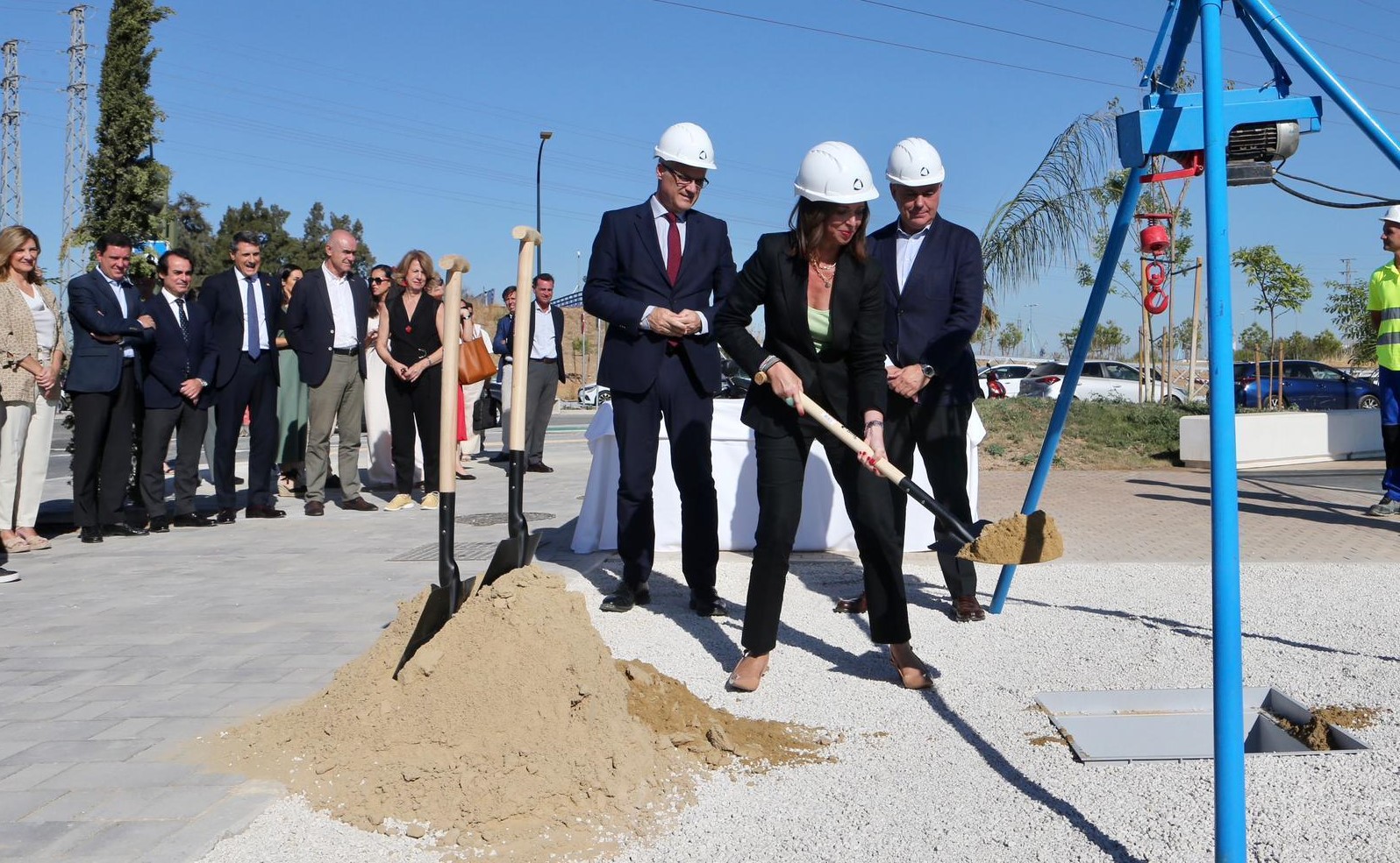 La consejera de Fomento, Articulación del Territorio y Vivienda, Rocío Díaz, ha asistido junto al alcalde de Sevilla, José Luis Sanz, y el secretario de Estado de Vivienda y Agenda Urbana, David Lucas, al acto de colocación de la primera piedra de otras tres promociones públicas que sumarán otras 278 nuevas viviendas en alquiler a precio asequible al nuevo barrio de Palmas Altas de la capital hispalense. Estas nuevas promociones recibirán el impulso de la Junta de Andalucía mediante una subvención de 13,4 millones de euros de los fondos Next Generation del Plan Ecovivienda, que supone un tercio del coste total de las obras.