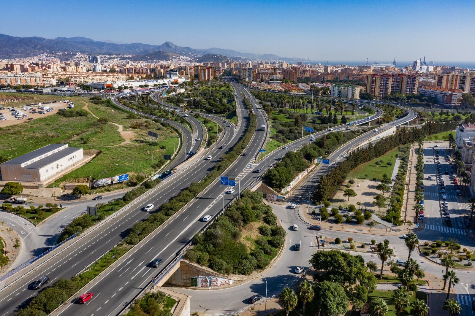 Visita aérea del acceso a Málaga por la autovía del Guadalhorce (A-357).