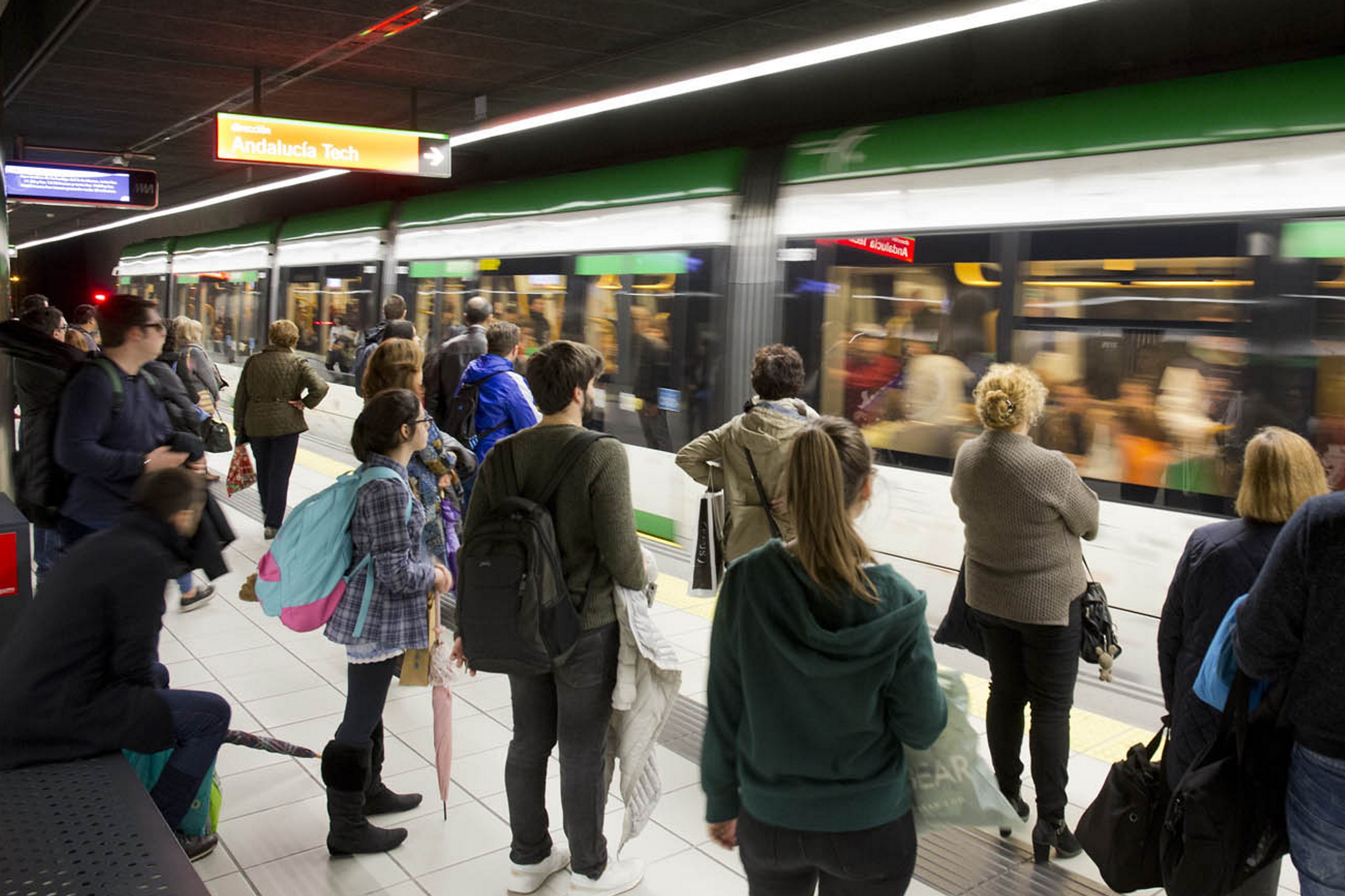 Viajeros en el Metro de Málaga.