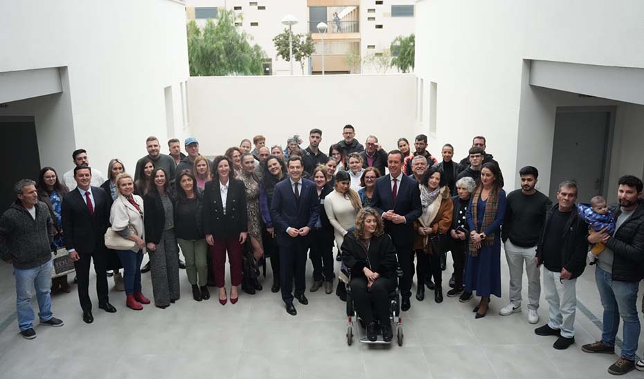 Moreno ha asistido en la zona de Costacabana en Almería a la entrega de 64 viviendas en régimen de alquiler a precio asequible. Un proyecto que, según ha explicado, ha contado con la colaboración de las tres administraciones, Gobierno de España, Ayuntamiento de Almería y Junta de Andalucía.