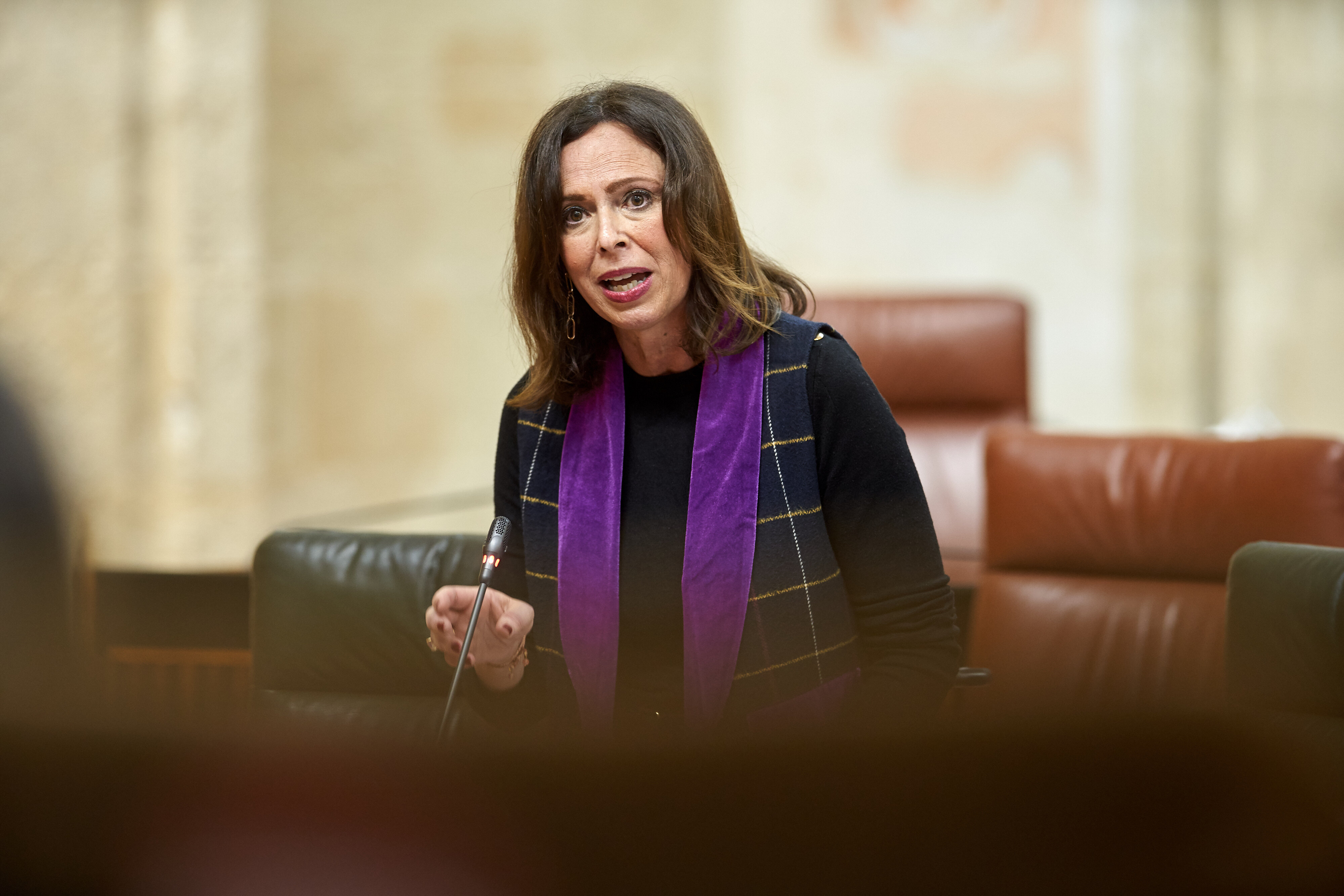 La consejera de Fomento, Rocío Díaz, en su intervención esta mañana en el Pleno del Parlamento.