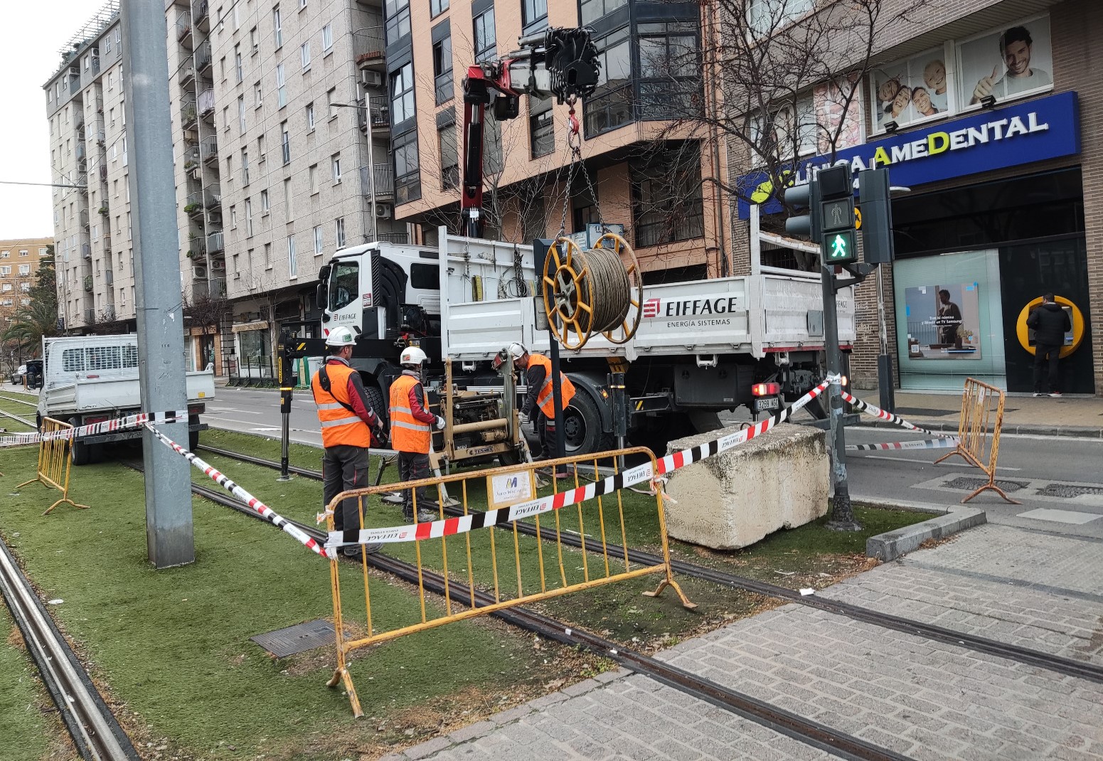 Trabajos de sustitución del cableado en el tranvía de Jaén.