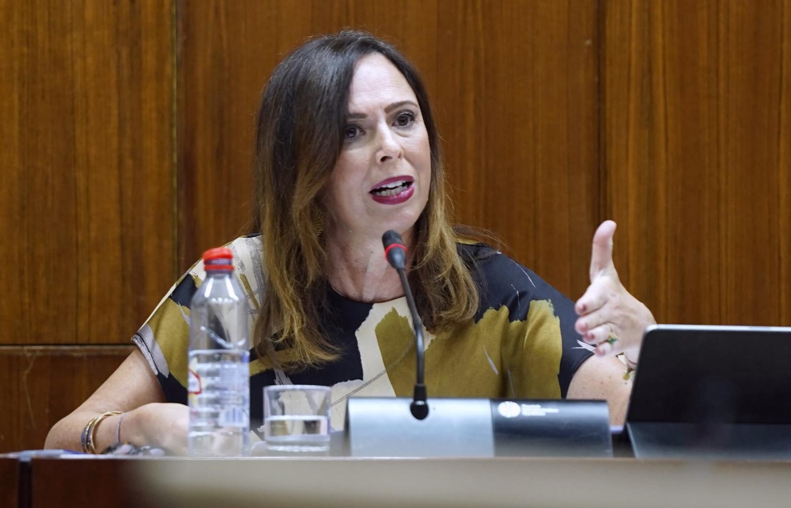 La consejera Rocío Díaz en la Comisión de Fomento, esta mañana en el parlamento andaluz.