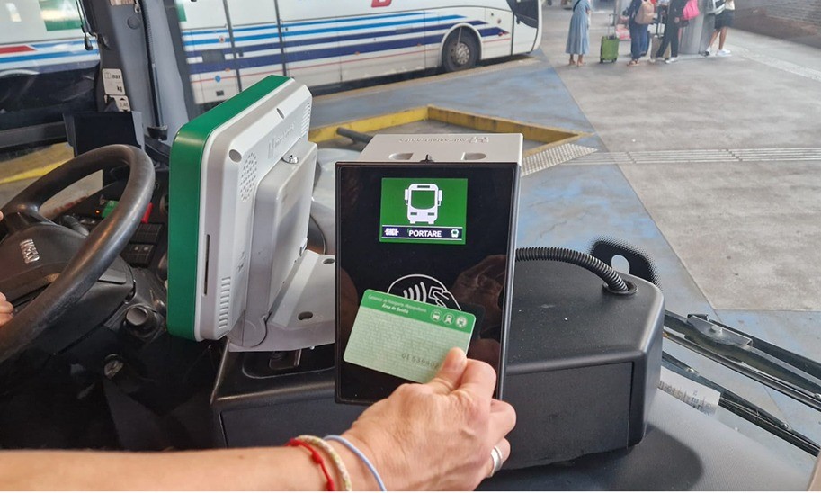 Usuario valida su viaje con la tarjeta del Consorcio Metropolitano de Transportes.