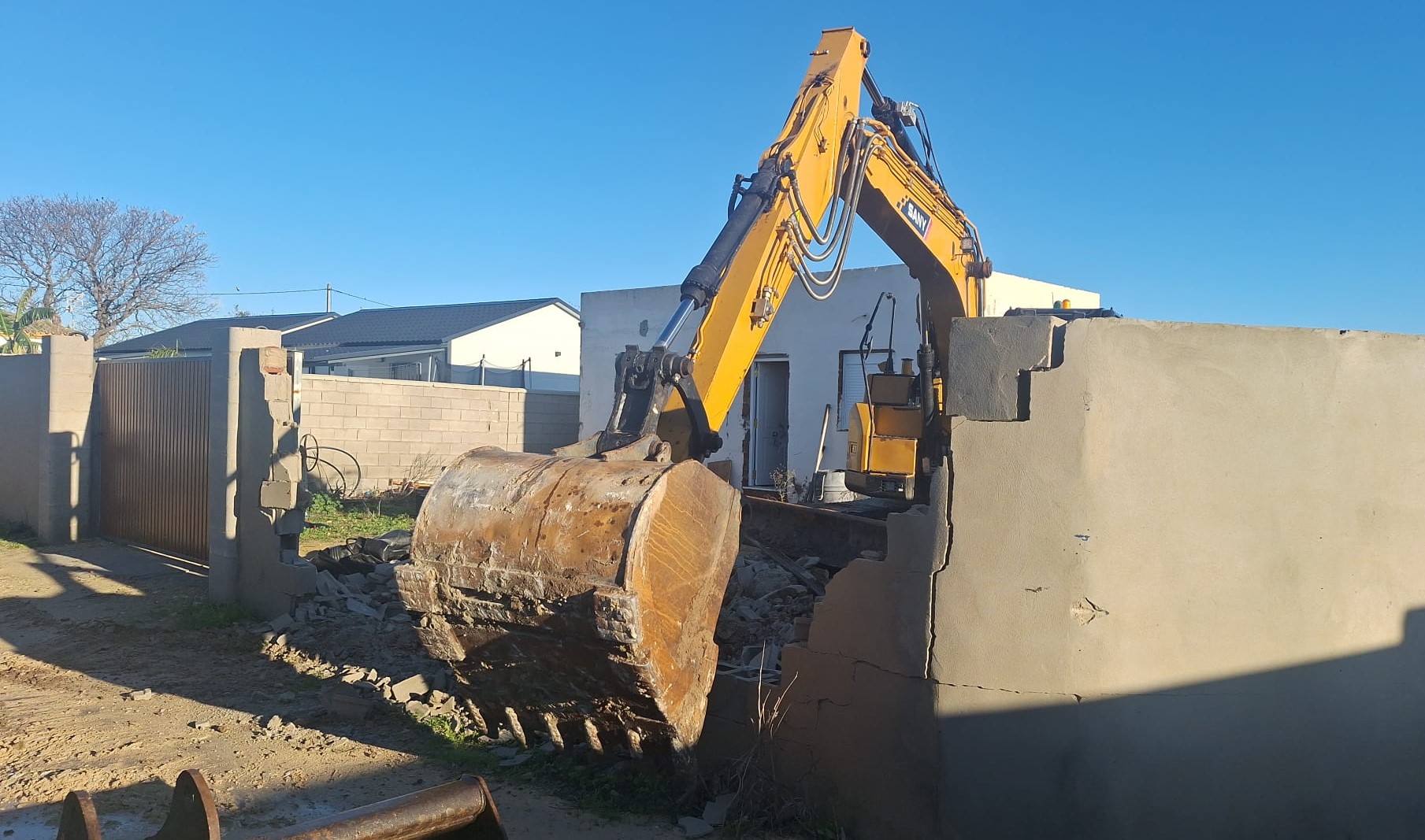 La Junta de Andalucía ha llevado a cabo este miércoles la demolición de una edificación y tres cerramientos perimetrales de parcelas que actualmente carecen de edificaciones en la zona de la Ribera de la Oliva, en Barbate. El operativo de la inspección urbanística de la Junta de Andalucía se ha realizado sobre una edificación que estaba en construcción en suelo rústico y que ya fue precintada en su día, aunque posteriormente el propietario rompió el precinto y siguió construyendo, desoyendo la orden de suspensión dictada por la Consejería de Fomento, Articulación del Territorio y Vivienda.
