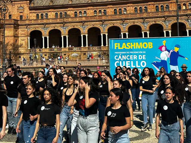 En el Día Mundial de la Prevención del Cáncer de Cuello de Útero, 26 de marzo, la Dirección General de Salud Pública y Ordenación Farmacéutica de la Consejería de Salud y Consumo ha convocado a la ciudanía a una coreografía grupal o flahmob en la Plaza de España de Sevilla. El objetivo es concienciar a las mujeres andaluzas de la importancia de la prevención y la detección precoz de esta patología, con acciones como la vacunación, el uso del preservativo y la realización de pruebas diagnósticas.