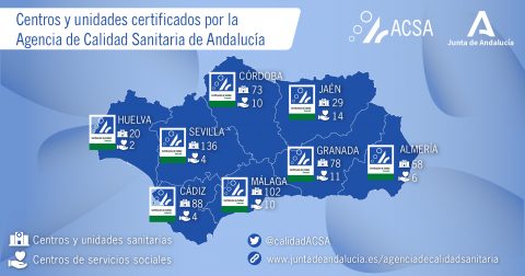 Dentro del sistema sanitario andaluz 584 entidades disponen ya de la certificación de calidad la ACSA. Entre ellas se encuentran 224 unidades y servicios hospitalarios, 160 unidades de atención primaria, 37 centros de atención infantil temprana, 30 laboratorios clínicos, 29 hospitales, 22 servicios de urgencias y emergencias, 10 unidades de diagnóstico por imagen, 10 centros de atención sanitaria sin internamiento, nueve farmacias, siete unidades de hemodiálisis y siete centros regionales de transfusión sanguínea. Además, también cuentan con el sello de calidad 38 centros y unidades de formación continuada para profesionales sanitarios. Asimismo, un centro del Sistema Sanitario Público de Andalucía ha conseguido la certificación como institución sanitaria para sus estructuras de gestión y soporte a la actividad asistencial, en concreto el Área de Gestión Sanitaria Sur de Granada.