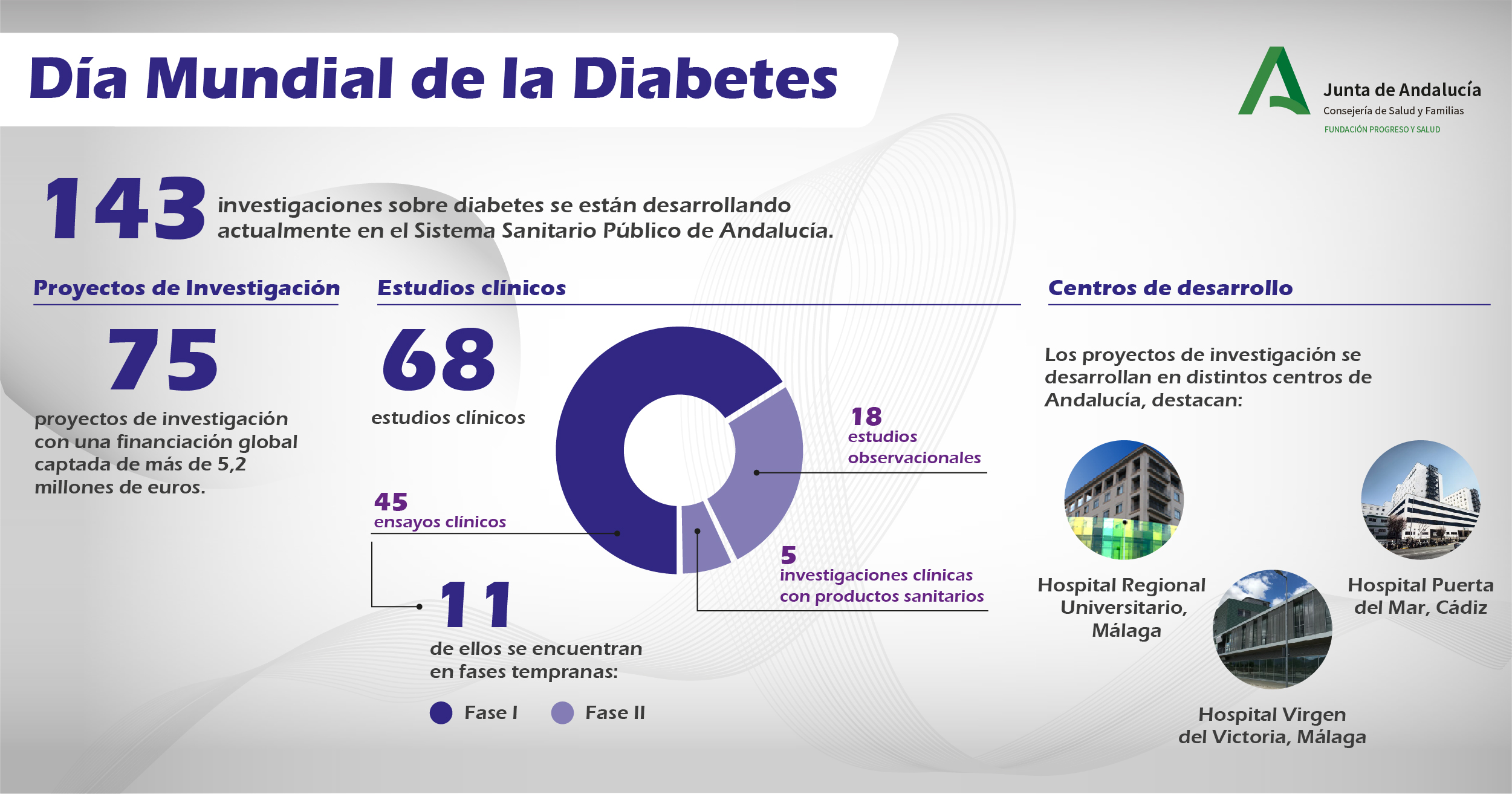 En el Sistema Sanitario Público de Andalucía se está desarrollando actualmente un total de 143 investigaciones sobre la enfermedad de diabetes, un problema de salud de gran impacto sanitario y social que padece alrededor de un 10% de la población.