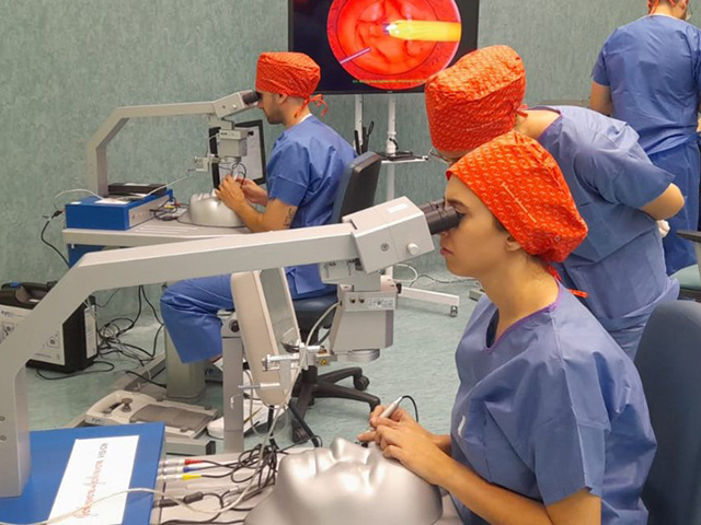 Se trata de un curso de gran relevancia en España por la combinación de dos escenarios de simulación para el entrenamiento de técnicas microquirúrgicas: por un lado, simuladores virtuales de última generación y por otro, wet lab o laboratorio experimental que utiliza biorreactivos especialmente preparados para la actividad.
