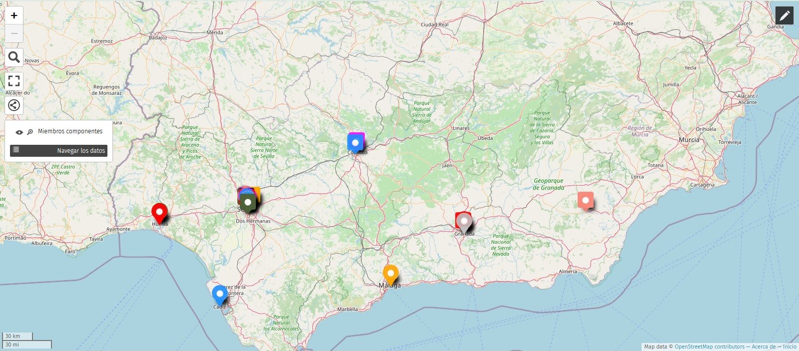 En los inicios del ejercicio de la competencia en Evaluación de Políticas Públicas, el IAAP constituyó (abril de 2016) un grupo de personas colaboradoras, pertenecientes a todas las consejerías y provincias de Andalucía. Se trata de unos cuarenta profesionales de muy diversos centros directivos que acudieron a la llamada realizada para impulsar esta actividad en la Junta de Andalucía, en la que participan de forma voluntaria y en paralelo a su puesto de trabajo específico en sus consejerías y agencias. Estas personas ostentan diversidad de titulaciones y especializaciones formación y experiencia en distintos ámbitos relacionados con la Evaluación de Políticas y muestran un alto compromiso por la mejora de la organización (clic en el mapa) .