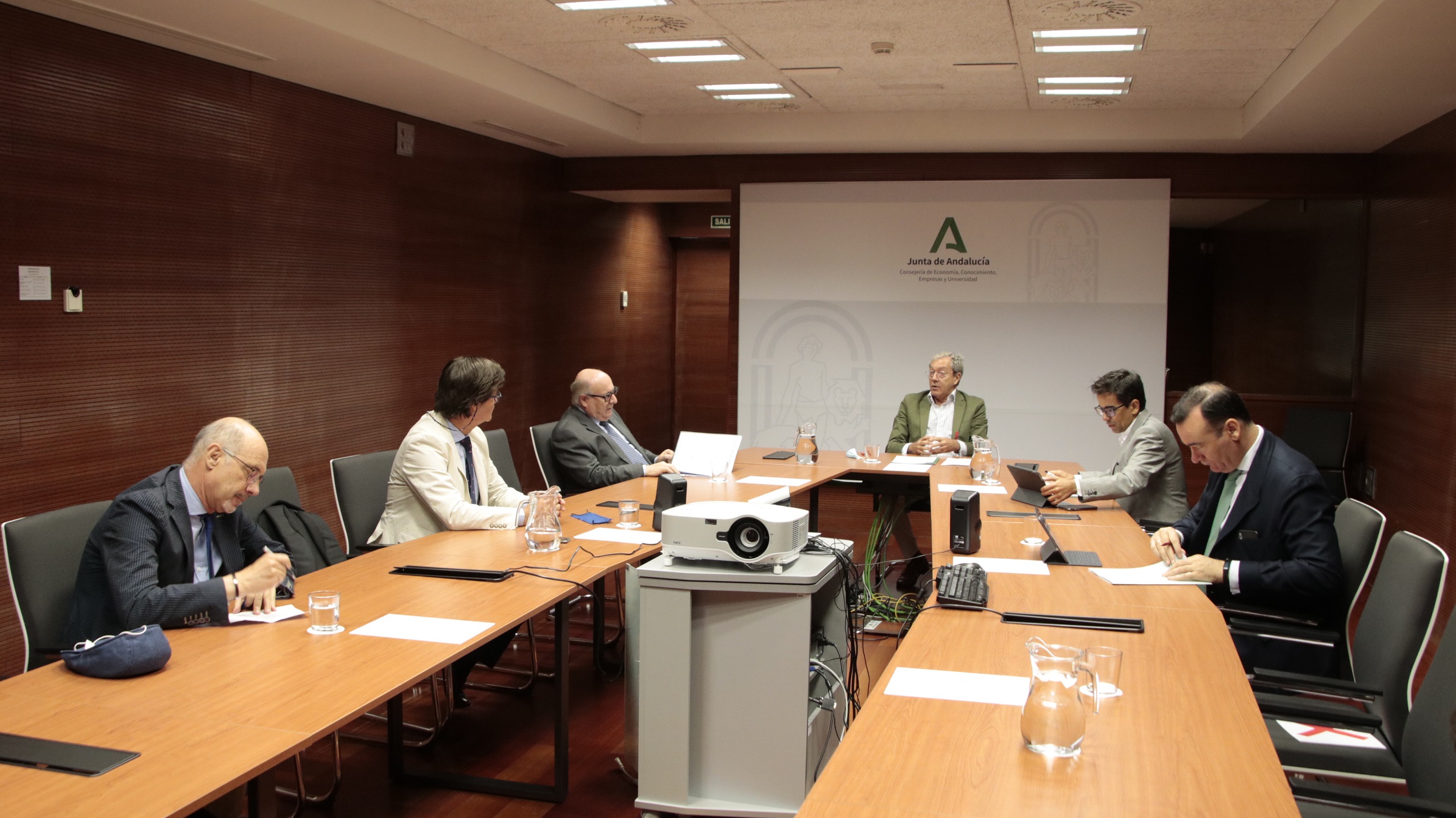 El consejero de Economía, Conocimiento, Empresas y Universidad, Rogelio Velasco, ha mantenido una reunión con el presidente de la Federación de Empresarios del Metal (FEDEME), Francisco Javier Moreno, para abordar la situación del sector aeroespacial en Andalucía, así como las diferentes acciones puestas en marcha desde el Ejecutivo autonómico con el objetivo de apoyar uno de los segmentos más perjudicados por la pandemia del COVID-19. En este encuentro también ha participado el presidente de la Confederación de Empresarios de Sevilla, Miguel Rus.
