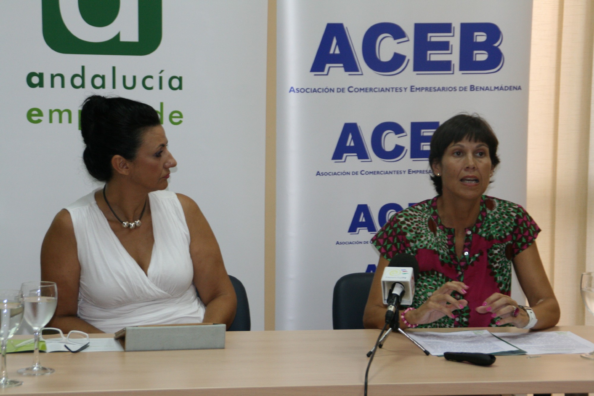 Marta Rueda ha inaugurado la jornada “Acción de fomento para personas emprendedoras” en Benalmádena. Ésta es la última de los cinco encuentros que se han organizado en la provincia de Málaga, al igual que en el resto de provincias andaluzas. La delegada ha estado acompañada por Rosa Mª González Rubia, presidenta de la Asociación de Comerciantes y Empresarios de Benalmádena, colaboradora en este encuentro, así como de Alberto de Azevedo, coordinador provincial de Diseño y Estrategias de la Fundación Andalucía Emprende.